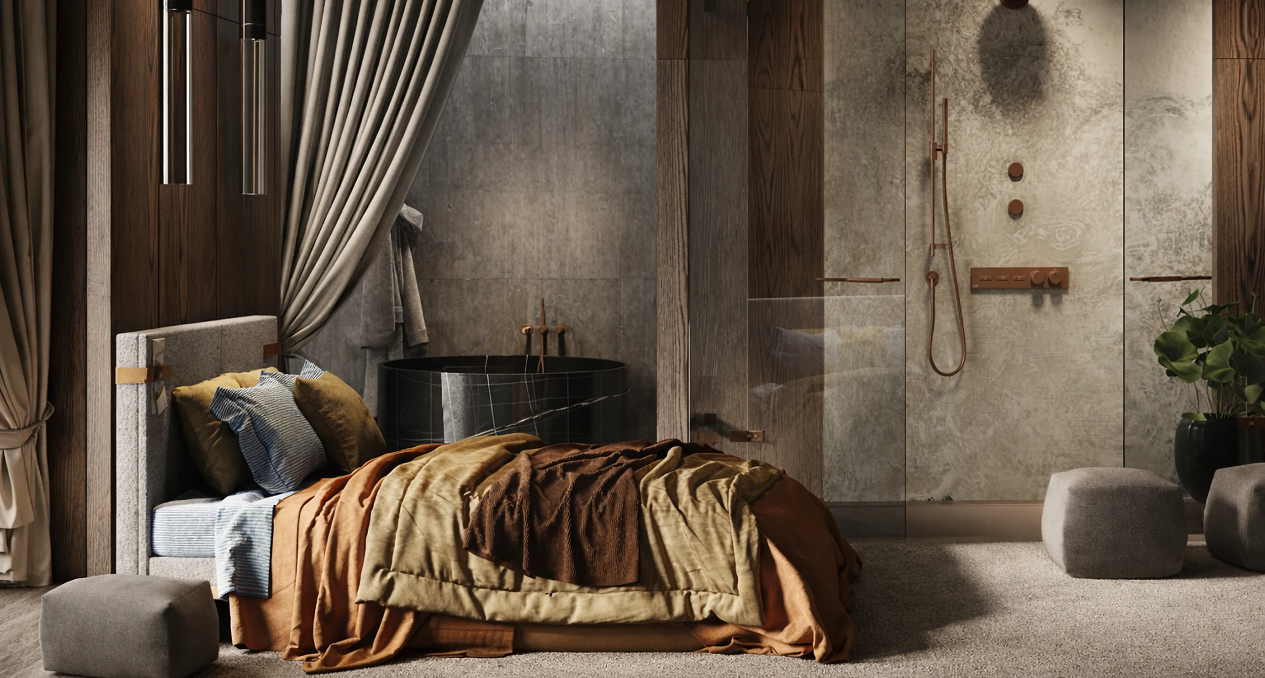 Sehr gefragt sind warme, natürliche Farben wie Greige, Sand, Beige und Creme. Ebenfalls stark im Trend sind matte Schwarztöne, Anthrazit und dunkle Erdtöne. Wer es etwas lebendiger mag, setzt Akzente mit Salbeigrün, Oliv, tiefem Blau oder Burgunder, oft kombiniert mit Holz. Wichtig ist meist eine ruhige, harmonische Farbwelt statt zu vieler Kontraste.